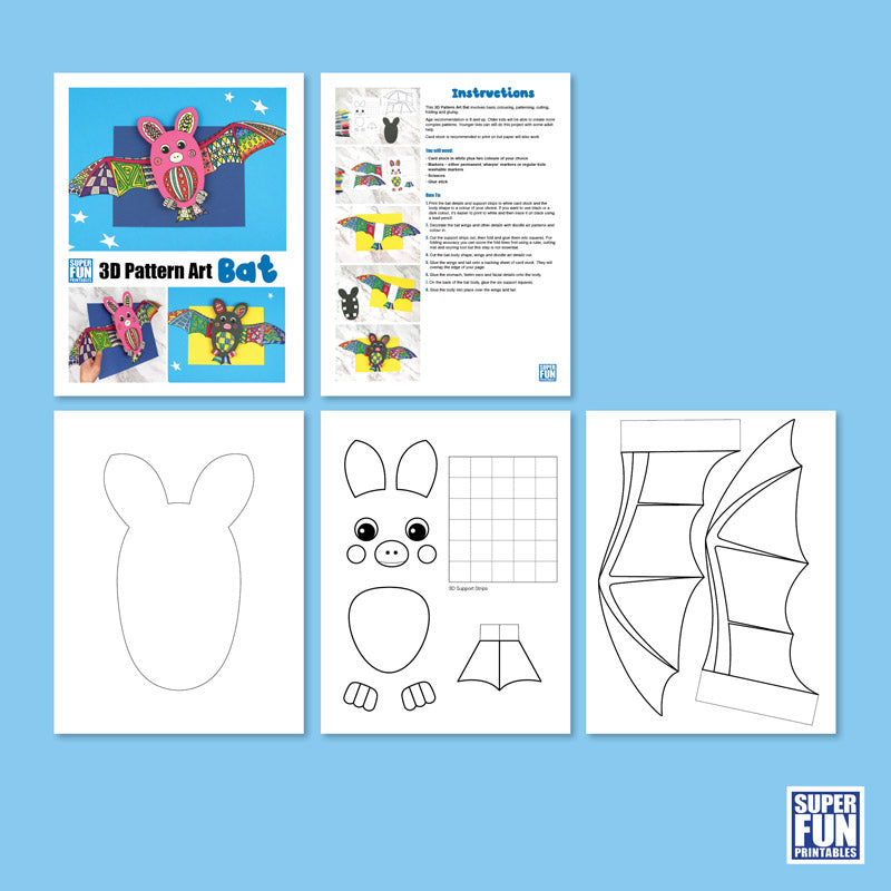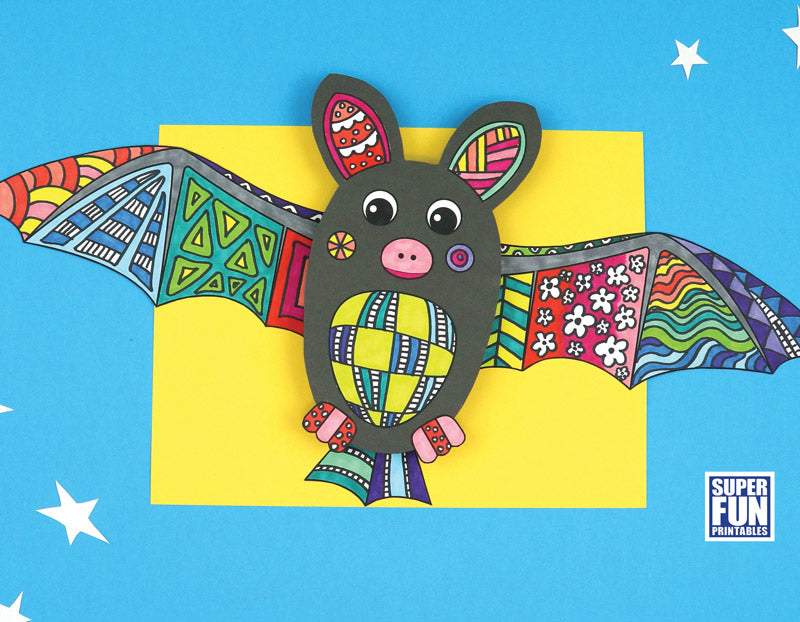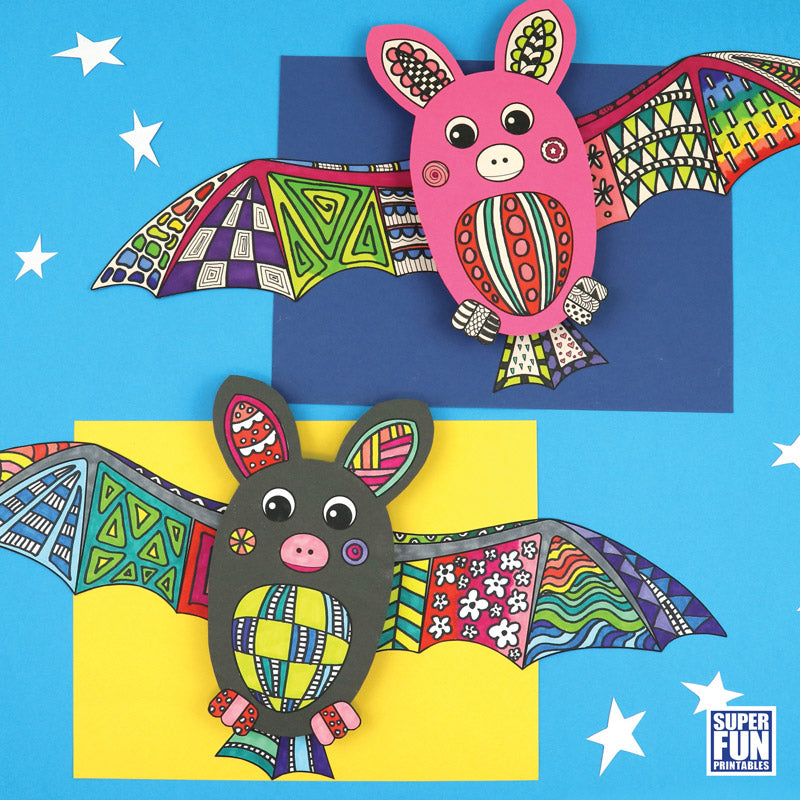 Create gorgeous and colourful 3D Bat Pattern Art with this printable template.
