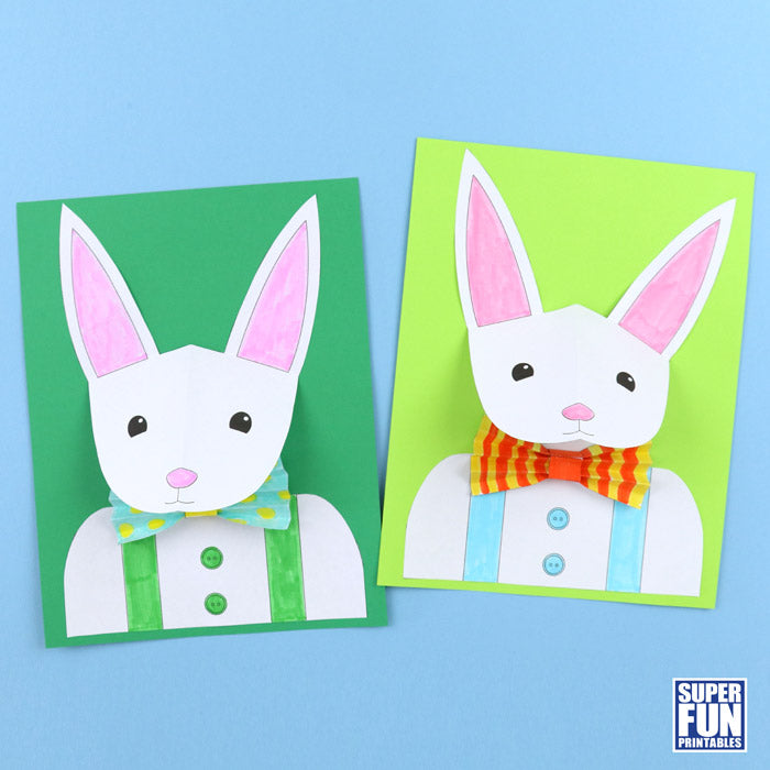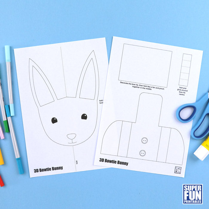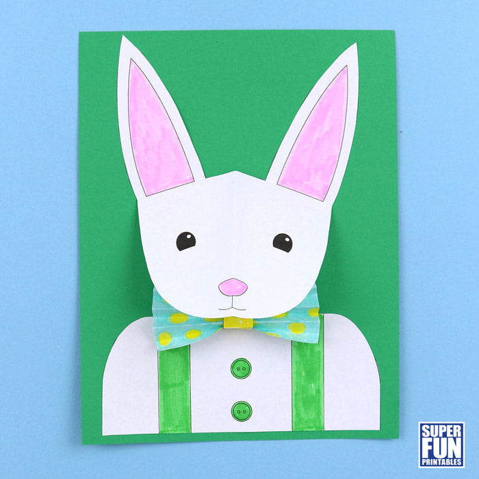 Make a cute 3D paper bowtie bunny portrait with this printable template.