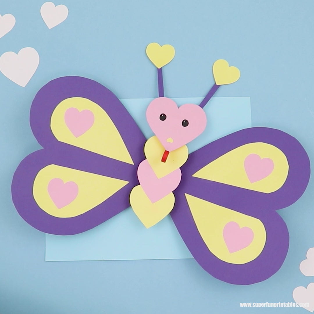 Create a 3D Love Butterfly from heart shapes using this printable template. The finished project has a 3D 'pop out' effect with raised wings and body.