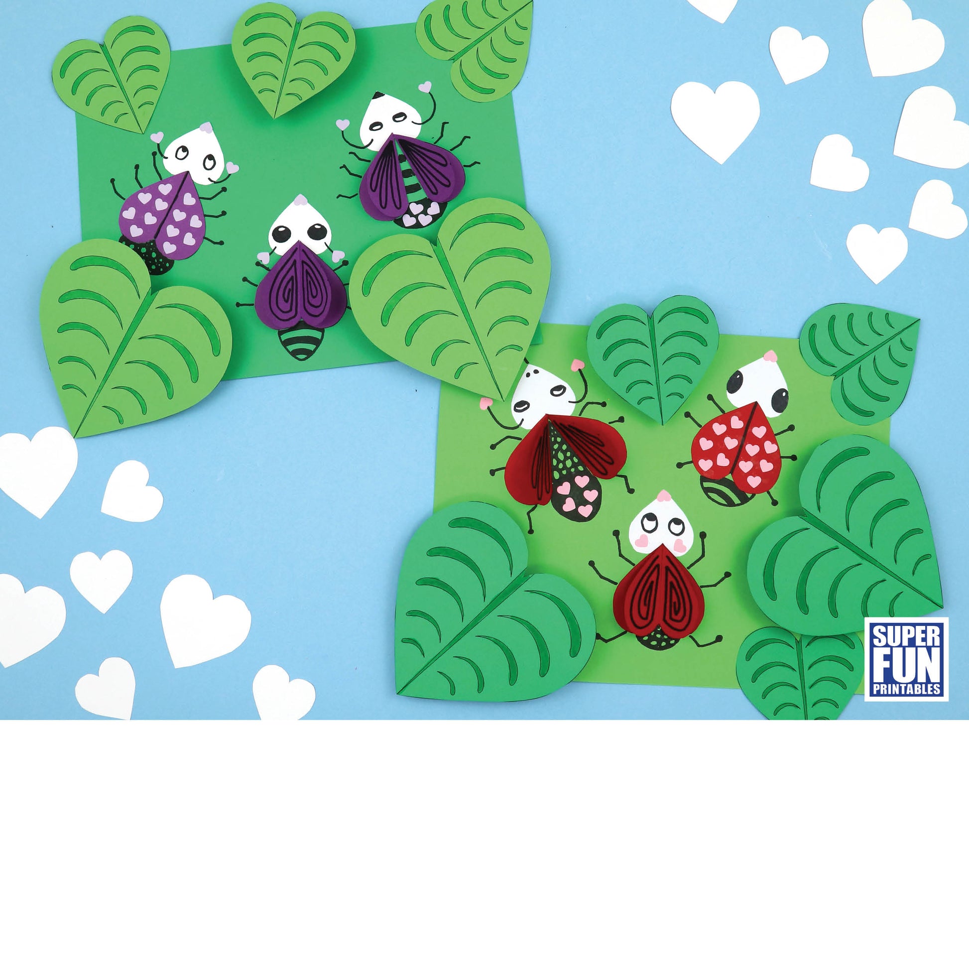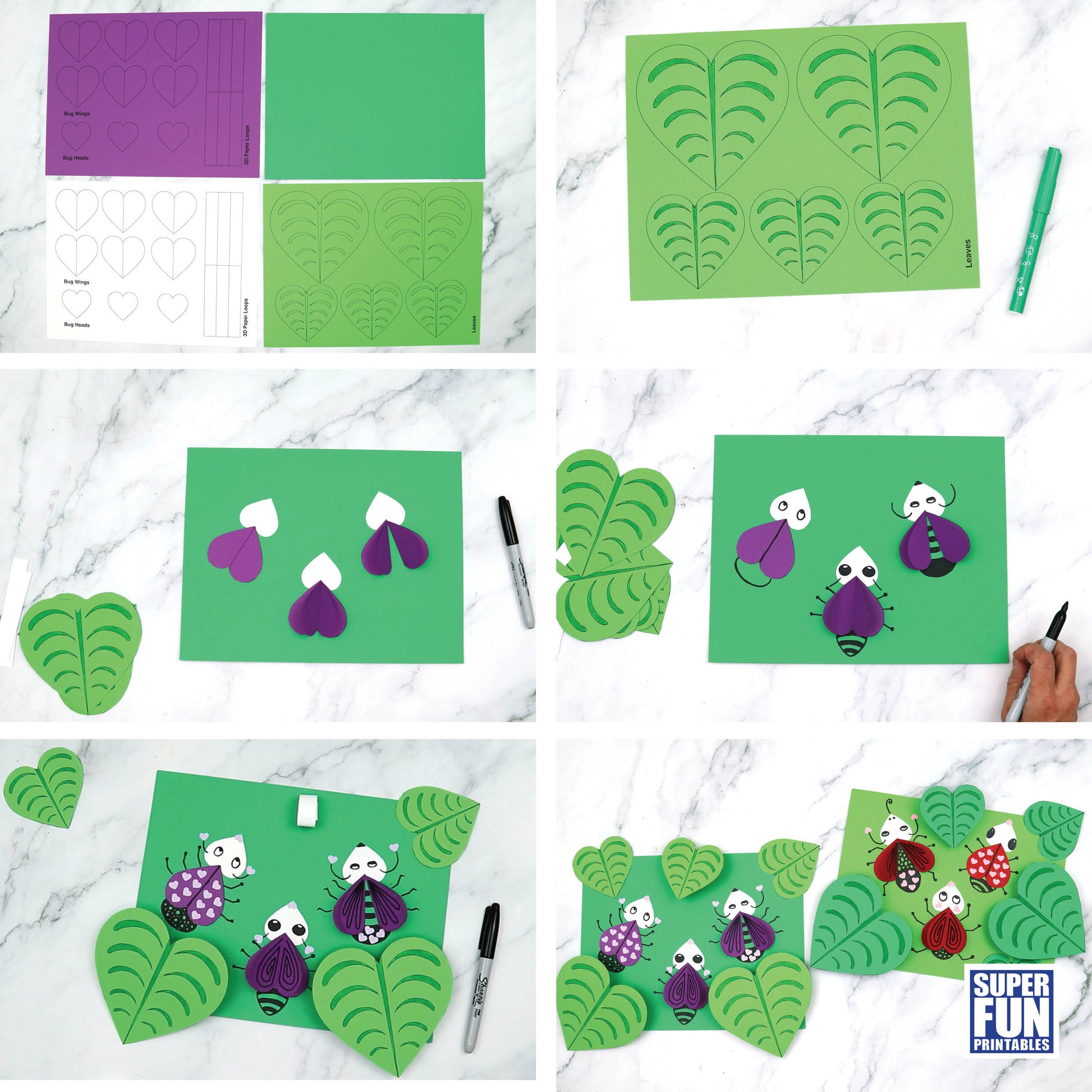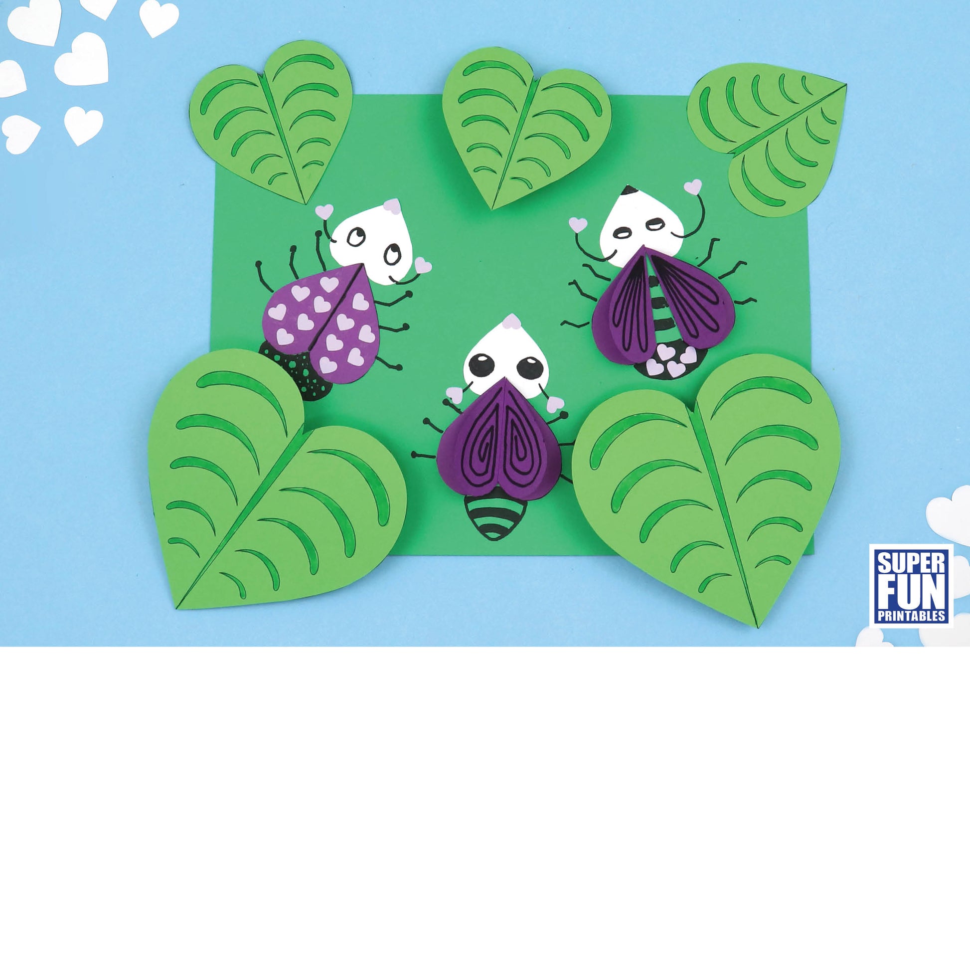 Create the cutest 3D Mini Lovebugs from heart shapes using this template. The finished project has a 3D 'pop out' effect with raised leaves and bug wings.