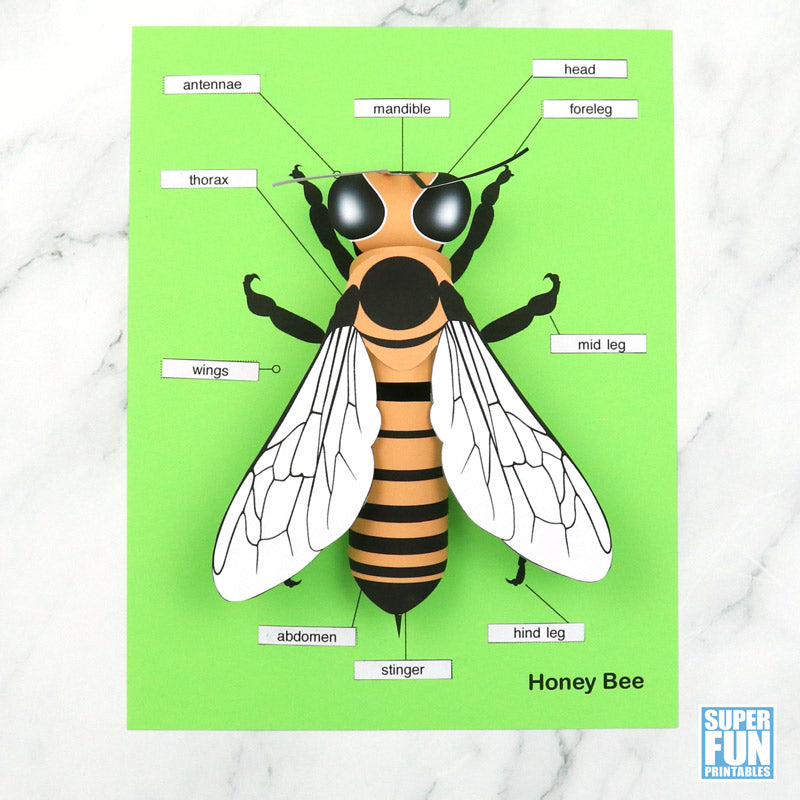 Make a realistic 3D paper bee complete with anatomy labels using our printable template.