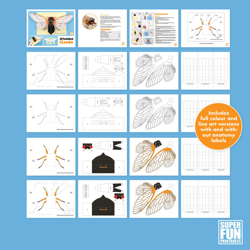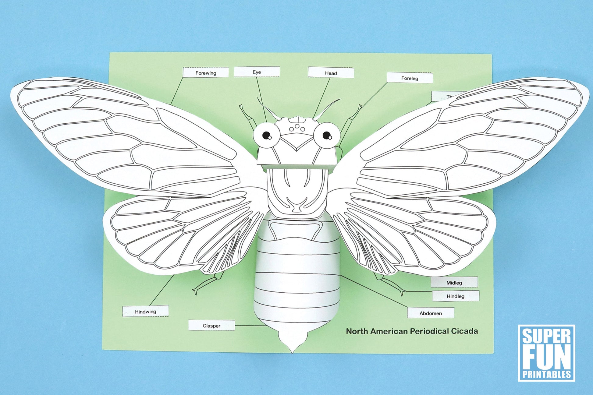 Create a realistic 3D paper cicada with or without anatomy labels using this template.
