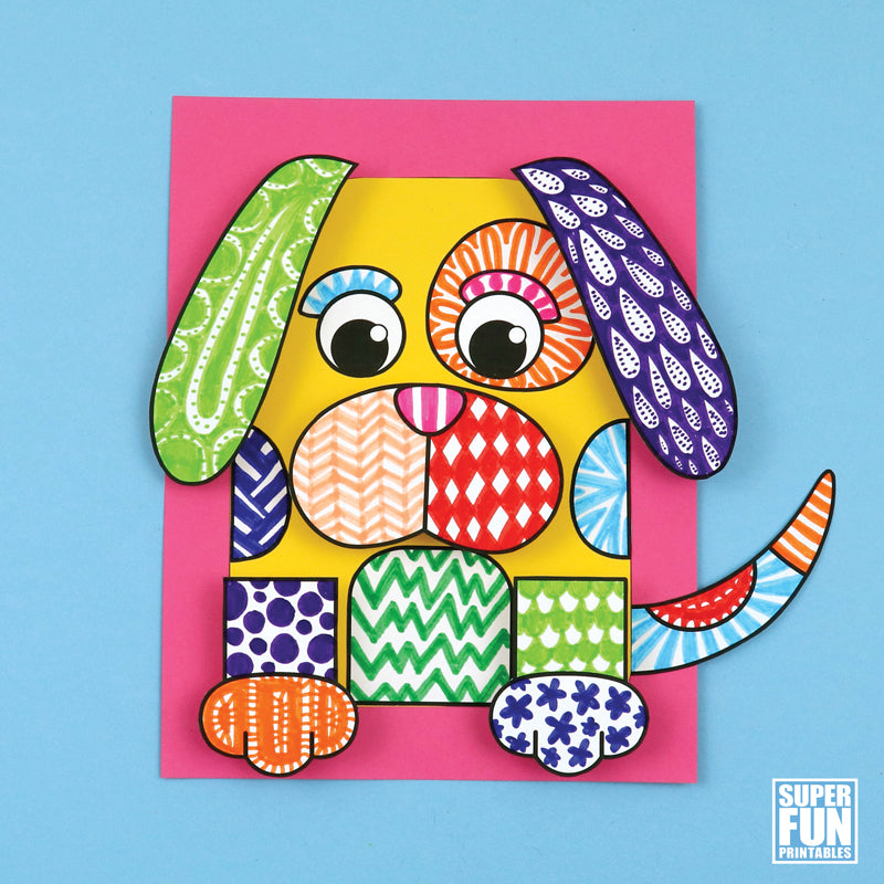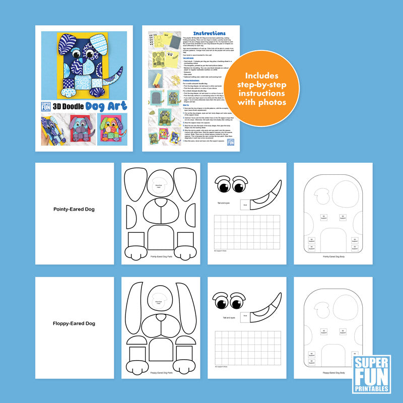 Make a colourful 3D Doodle Dog art project that really 'pops'. Kids can choose from a floppy-eared dog and a pointy-eared dog—both are included in the template.