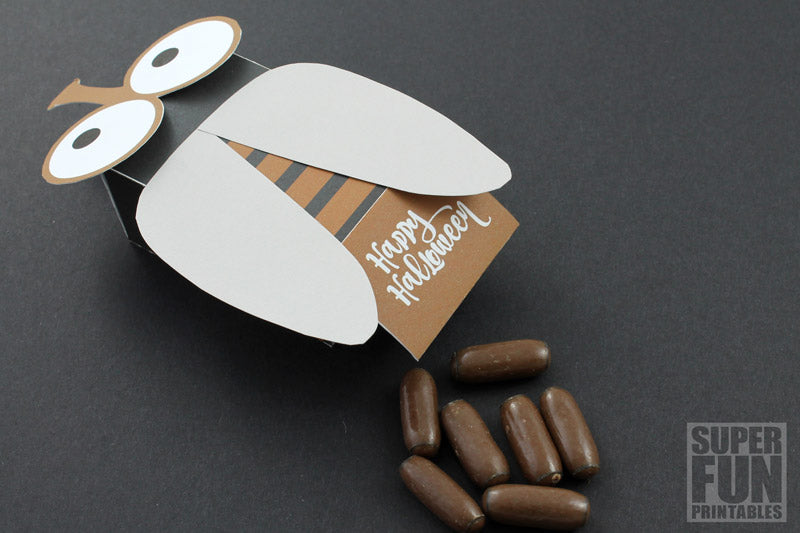 Once you've created it using our printable template fill it with small treats and use as a cute Halloween favour box.