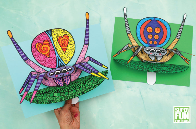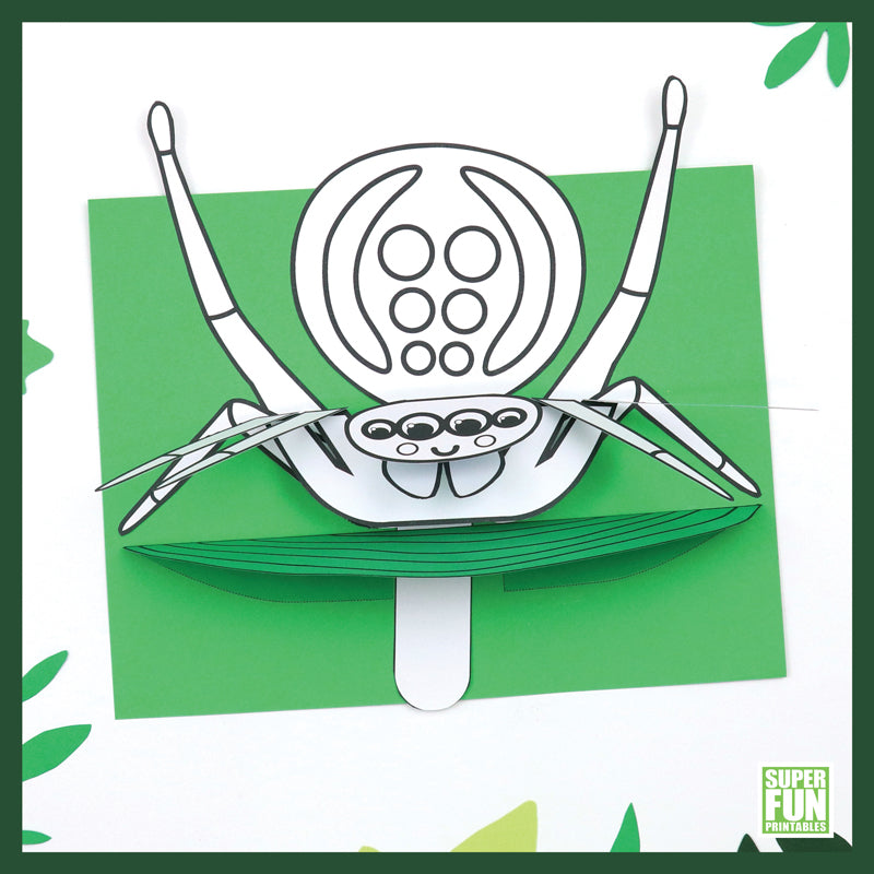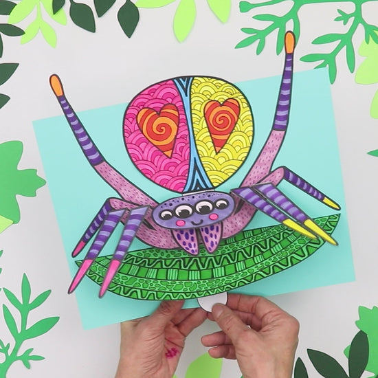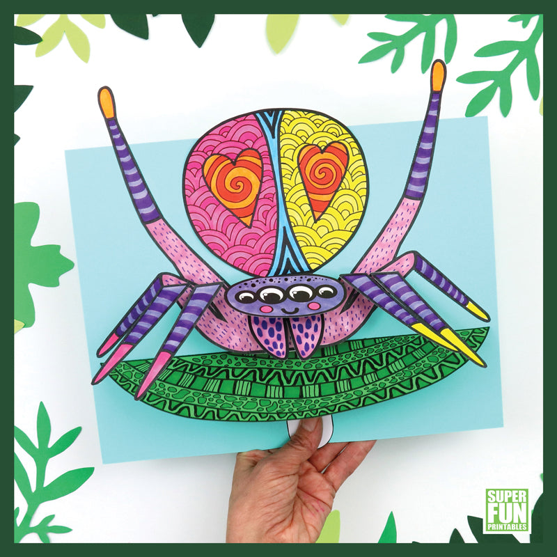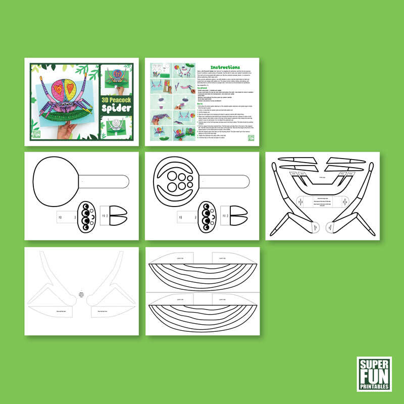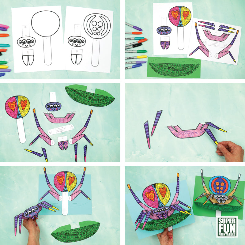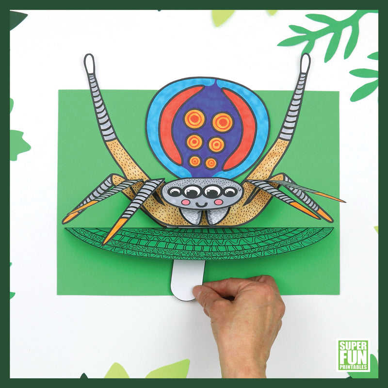 Make a 3D Peacock Spider that can wiggle and dance by moving his abdomen tab from side to side. This is a fun STEAM activity, perfect for kids learning about minibeasts.