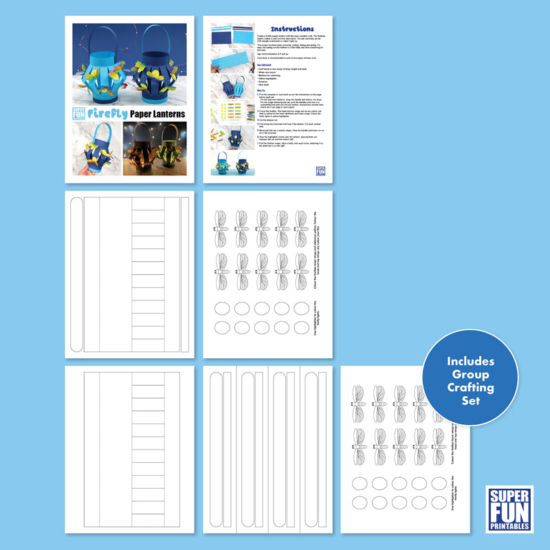 • The firefly Lantern template in a dual lantern set (to make two lanterns as pictured in opposite blue colours) and a group crafting set