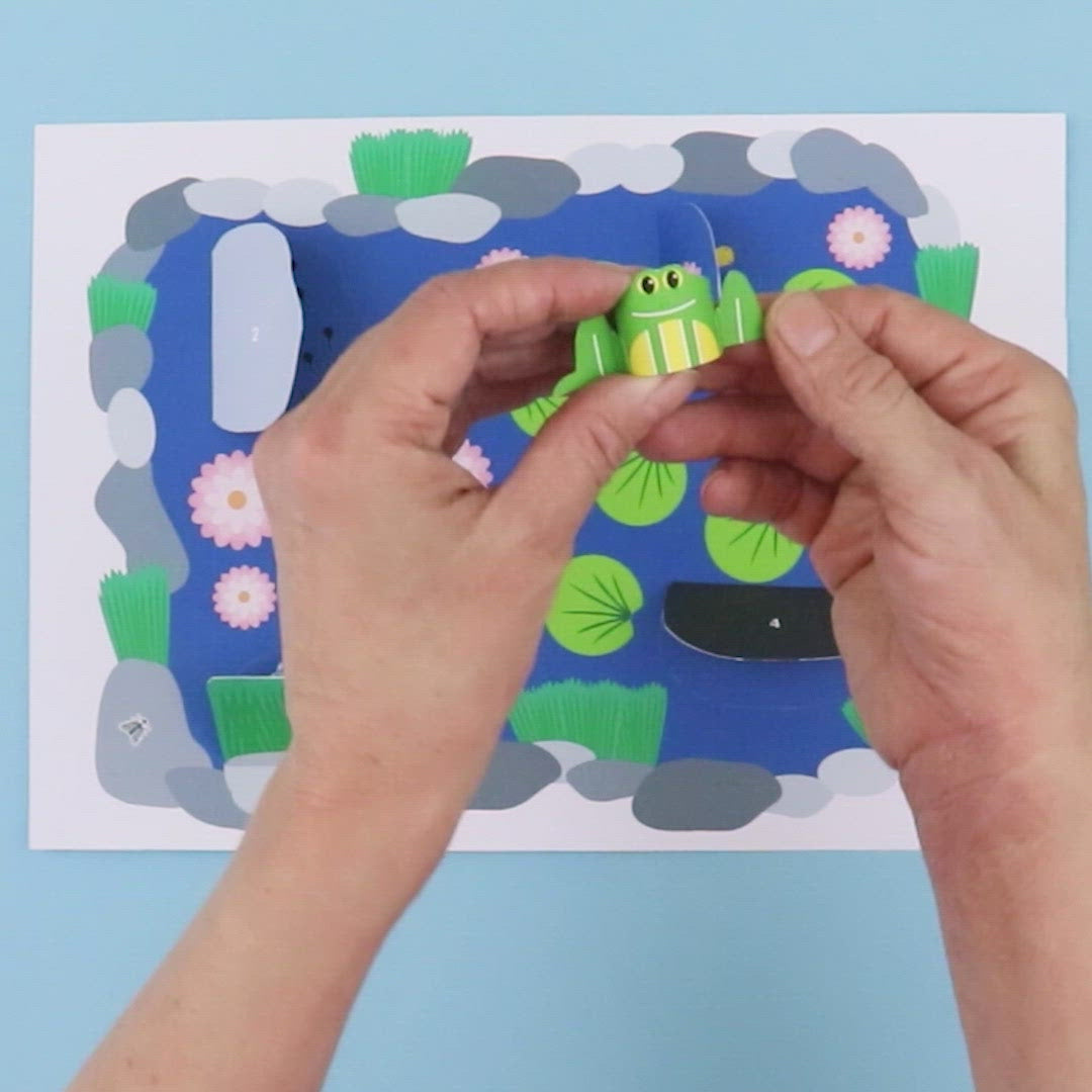A paper frog is included which is simple to cut out and glue together and can be made to ‘hop’ around the lily pads and rocks on the play mat.