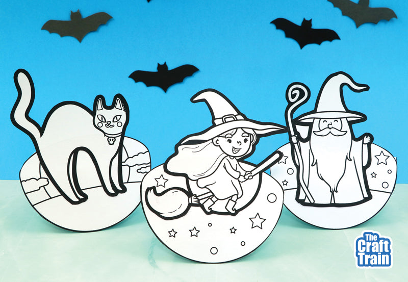 There are four cute designs to choose from: A witch, a black cat, a werewolf and a wizard. Make one, or make them all!