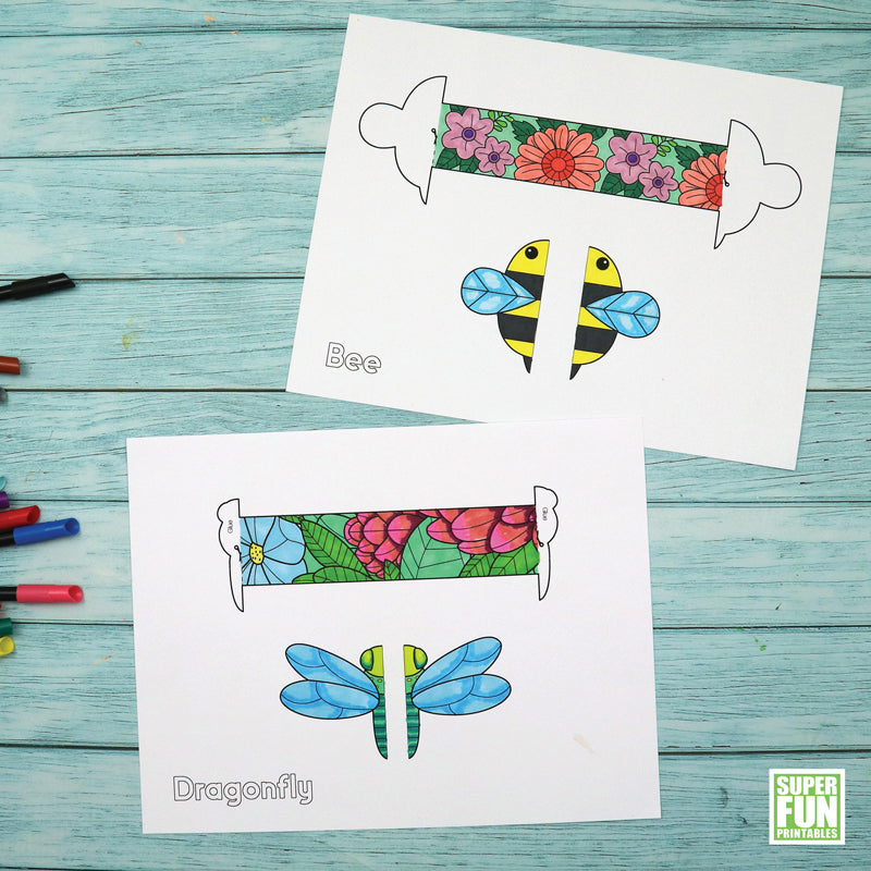 Print, colour and make a super cute set of Insect Paper Bracelets. There is a spider, a dragonfly, a bee and a moth for kids to craft and wear.