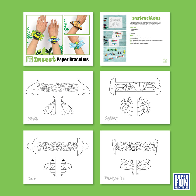 - The template to create the four insect paper bracelets listed above