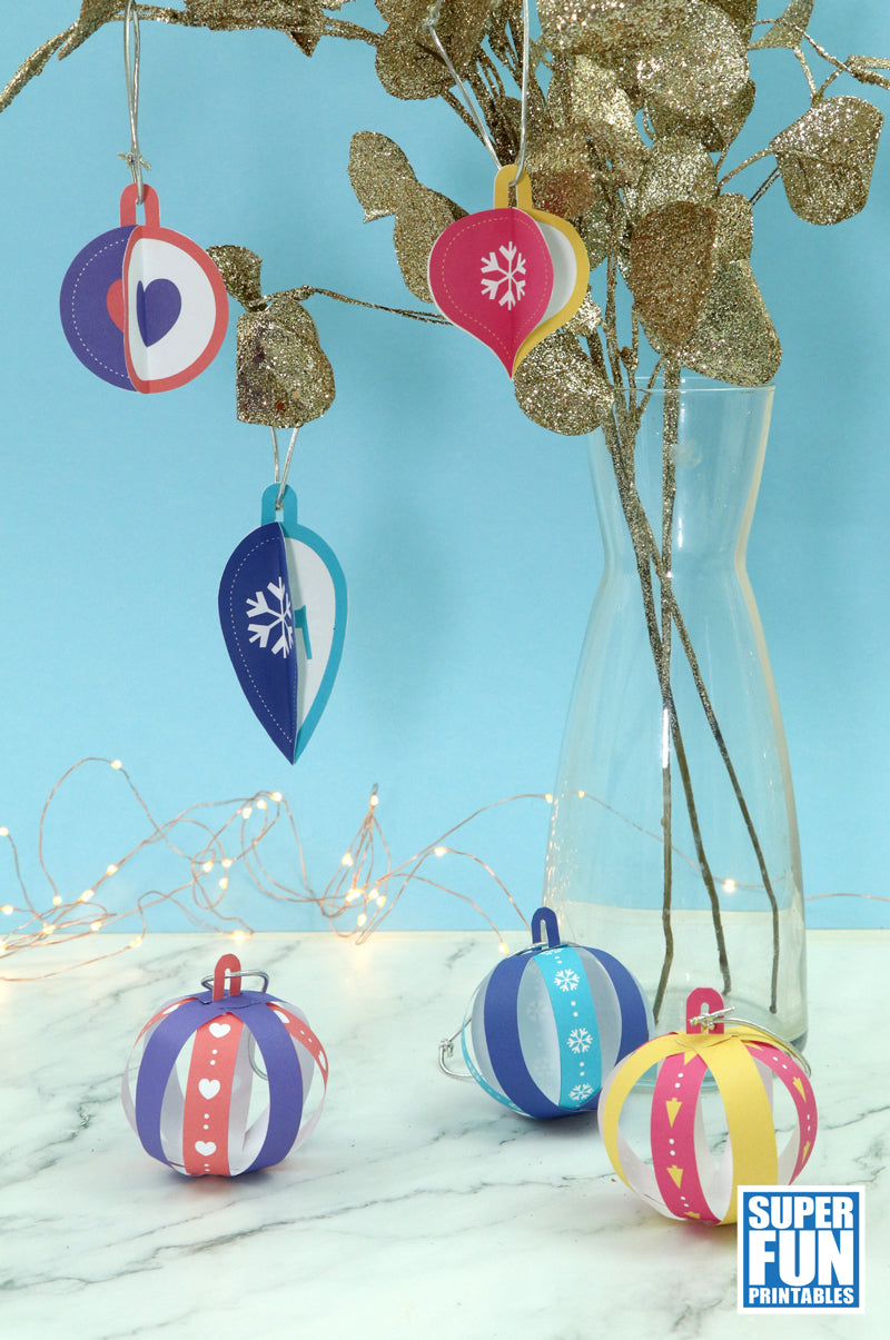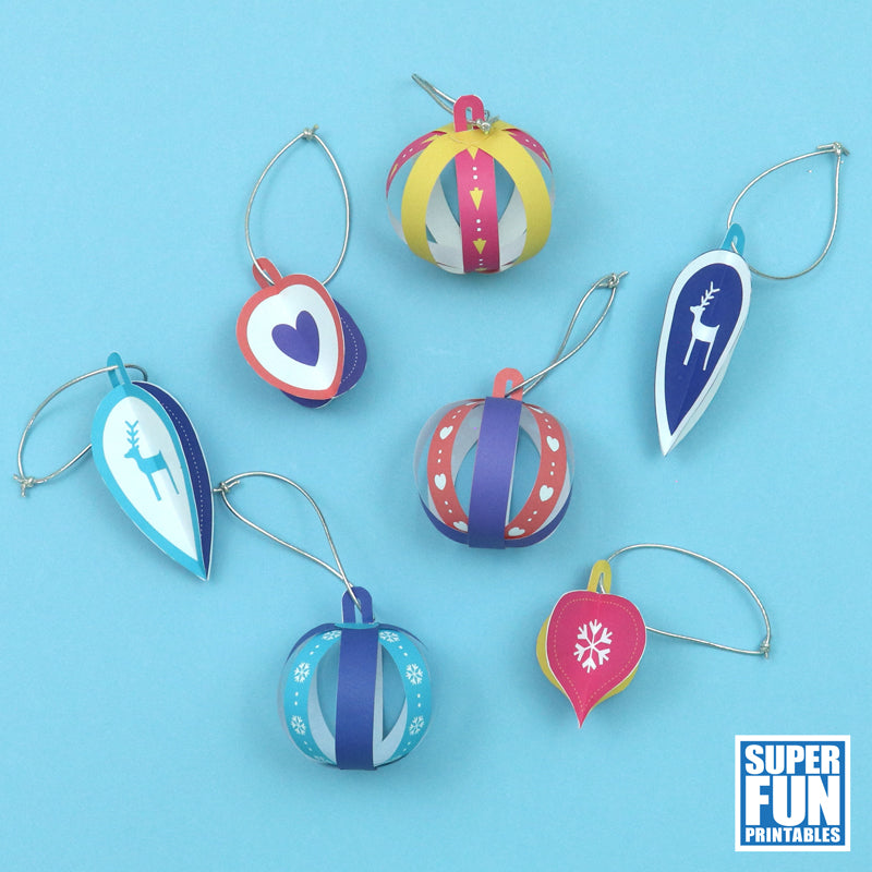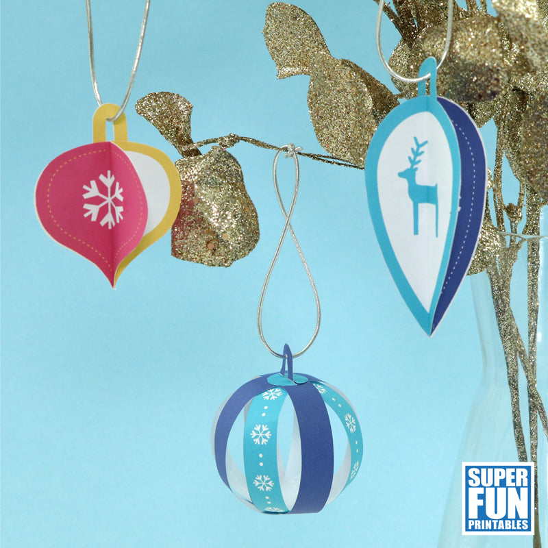 Make the prettiest baubles from paper this Christmas. There are two styles included, paper strip ornaments and folded paper ornaments. All you need to make them is our template printed to ordinary white paper, plus scissors and a glue stick.