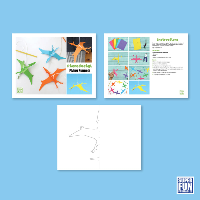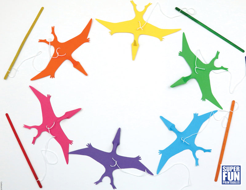 Create flying pterodactyl string puppets with this papercraft project.