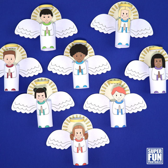 The aim was to create enough diversity within the printable set so that kids could make an angel who looks similar to themselves. While eight different looks is a limited range to go by, you can extend this number by using the black and white line art version and colouring the angels in any way you like.