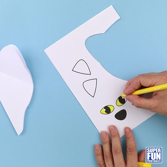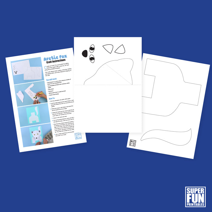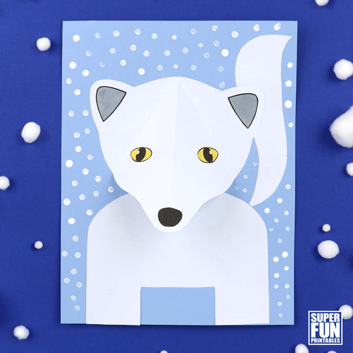 Create an Arctic Fox surrounded by falling snow from paper with a pop-out, 3D effect on his face using this printable craft template.