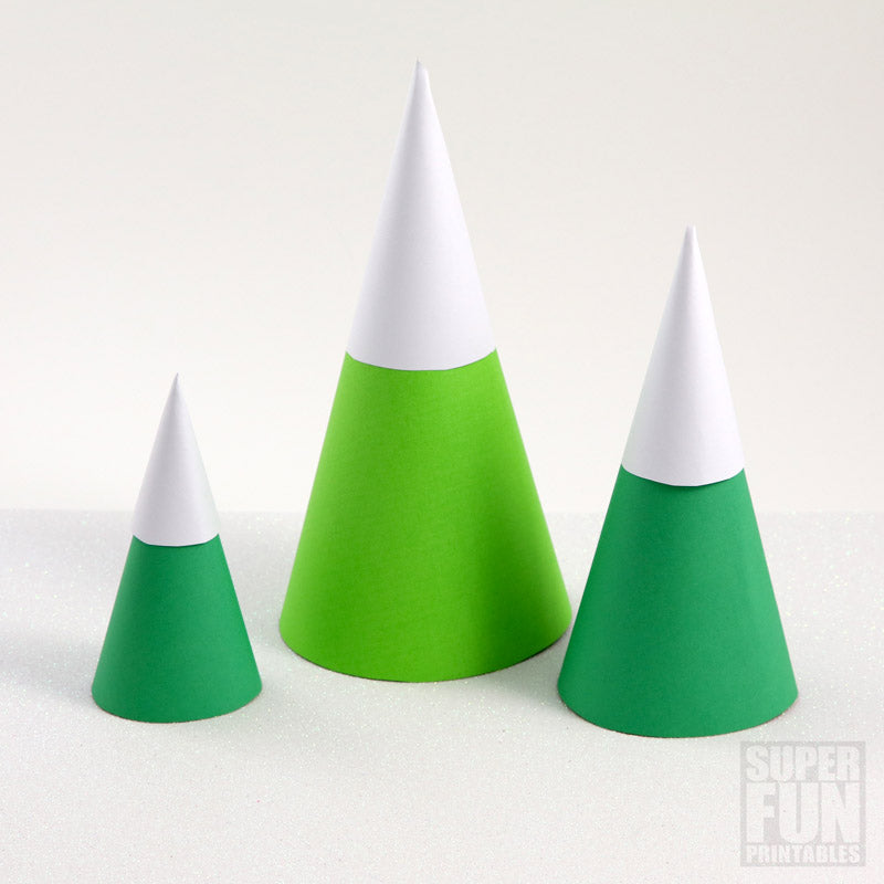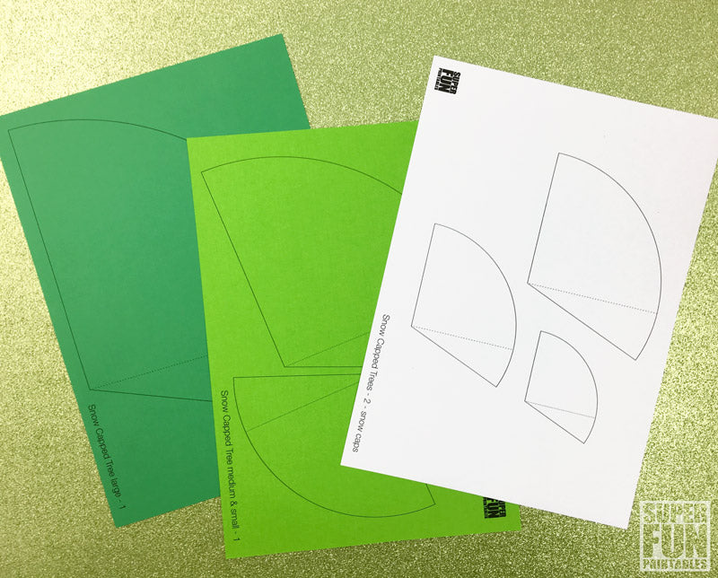 Make a wintery evergreen snow scene with this snow-capped tree template. You could go crazy and create trees in bold, bright non-tree colours (imagine them in black and white, or pink and gold) but we’ve gone for traditional green trees with white show.