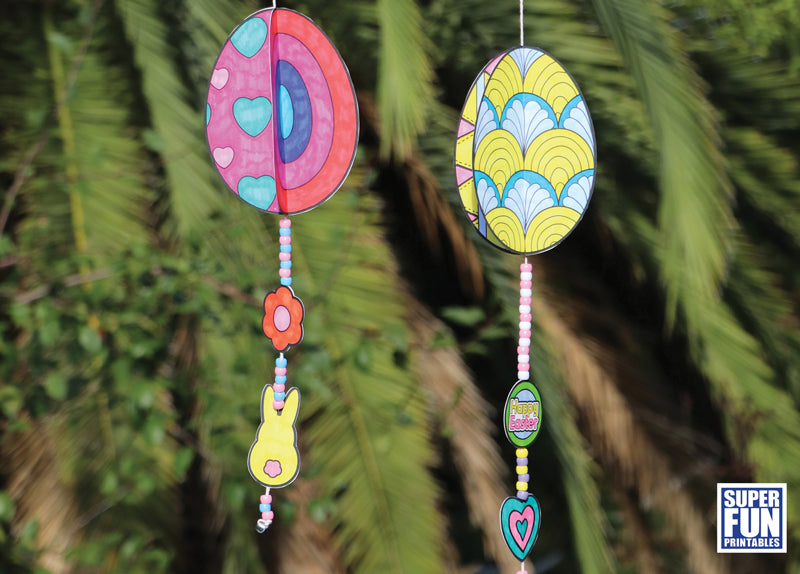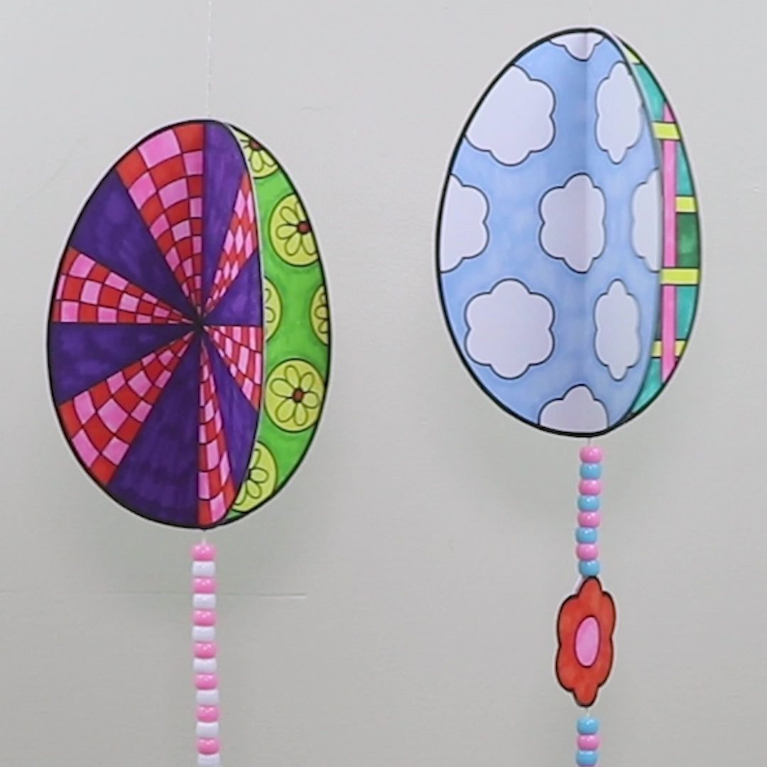 Create a decorative 3D paper egg that spins in the wind! Hang your creation somewhere where it can catch a breeze to watch it twirl.