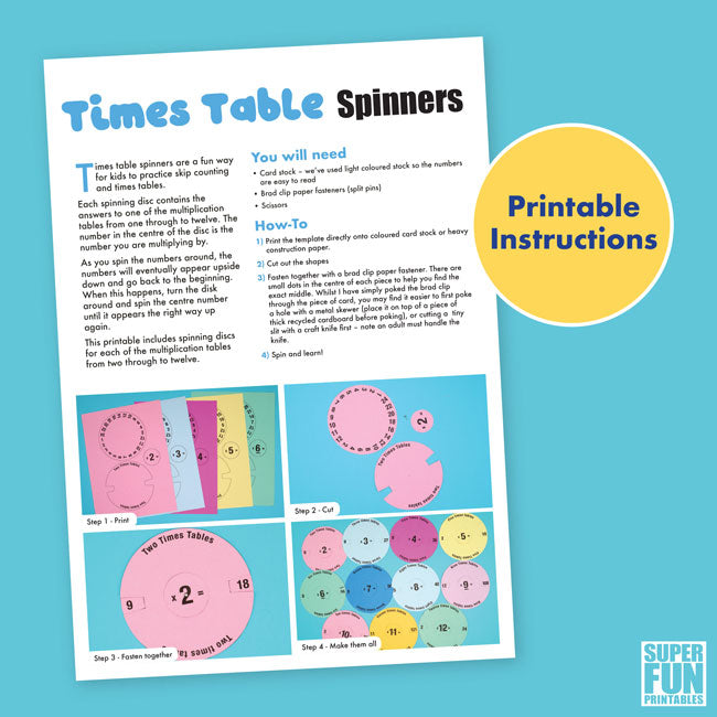 Times table spinners are a fun DIY toy you can make at home or in the classroom to help kids practice skip counting and times tables.