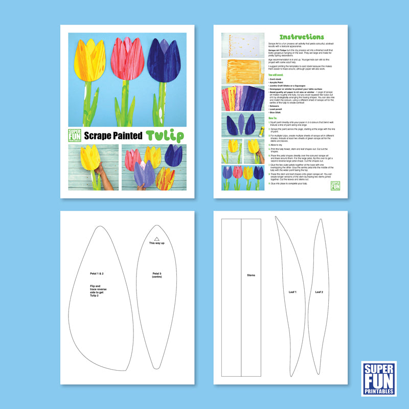 Create beautiful Tulips to hang on the wall using scrape art and our printable template.