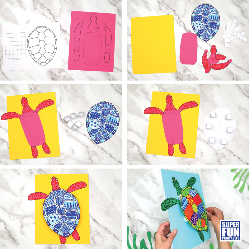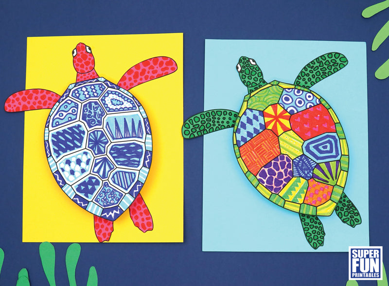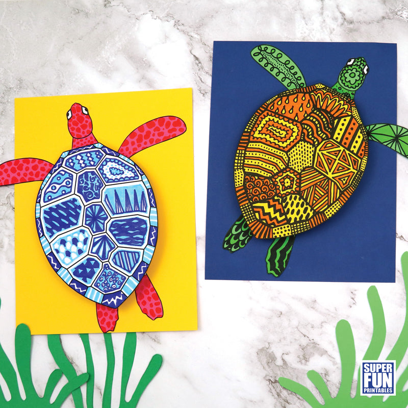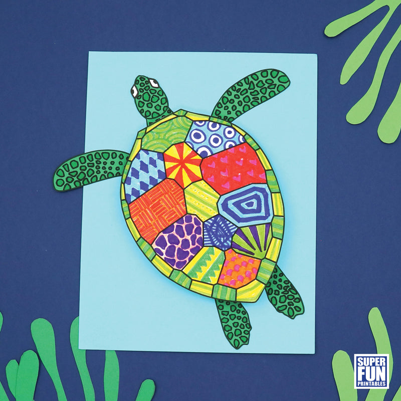 Create gorgeous 3D turtle doodle art with this template. The turtle shell sits higher than the body, giving the marine reptile a 3D effect. It's a great art project to support kids learning about ocean animals or for summer.